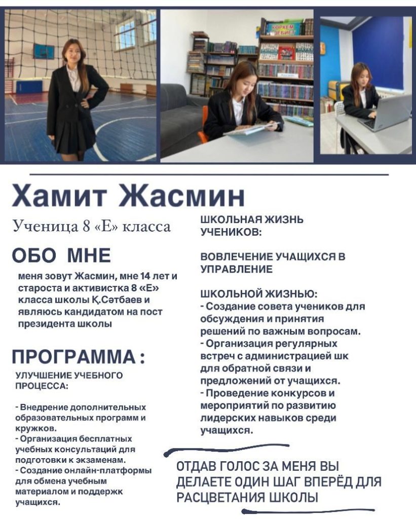🛑#9 үміткер — 8 «Е»- сынып оқушысы Хамит Жасмин