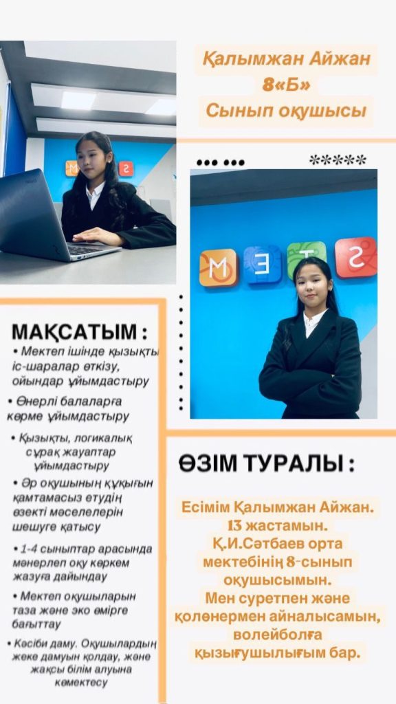 🛑#2 үміткер — 8 «Б»- сынып оқушысы Қалымжан Айжан