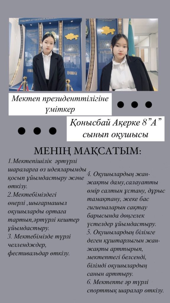 🛑#1 үміткер — 8 «А»- сынып оқушысы Қонысбай Ақерке